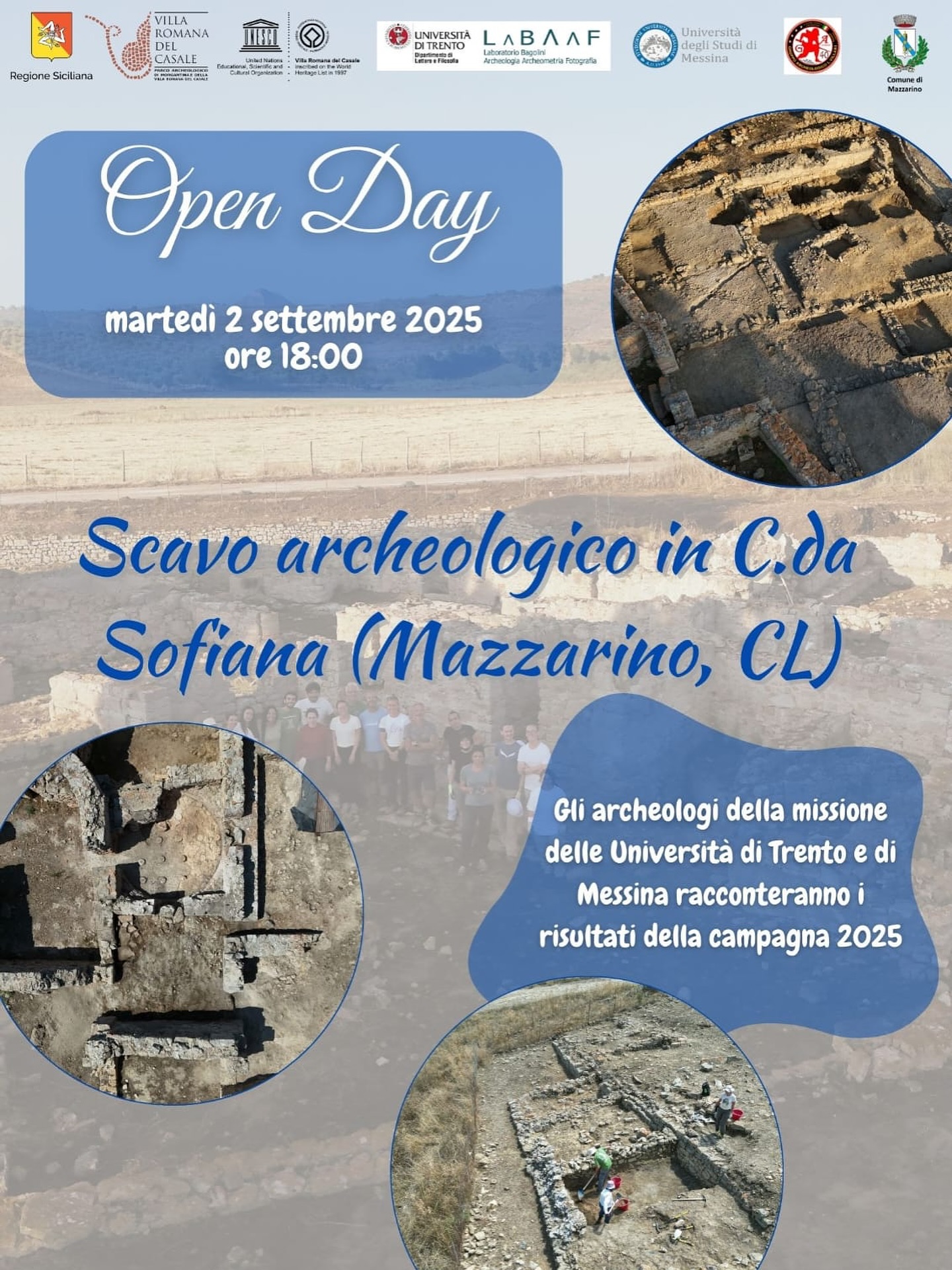 “Open Day a Sofiana”. Il 2 settembre 2025, alle 18, al sito archeologico di Sofiana di Mazzarino (Cl), incontro dedicato ai risultati della campagna di scavo 2025. Gli archeologi delle università di Trento e Messina condivideranno con il pubblico i dati e le scoperte più recenti. Un’occasione per conoscere da vicino la ricerca sul campo e i suoi sviluppi. Per raggiungere il sito https://maps.app.goo.gl/PSYqunsKn8RQs3nu8?g_st=ipc. Il sito di straordinaria ricchezza storica e archeologica racconta la presenza ellenistica, romana, bizantina, araba e normanna.