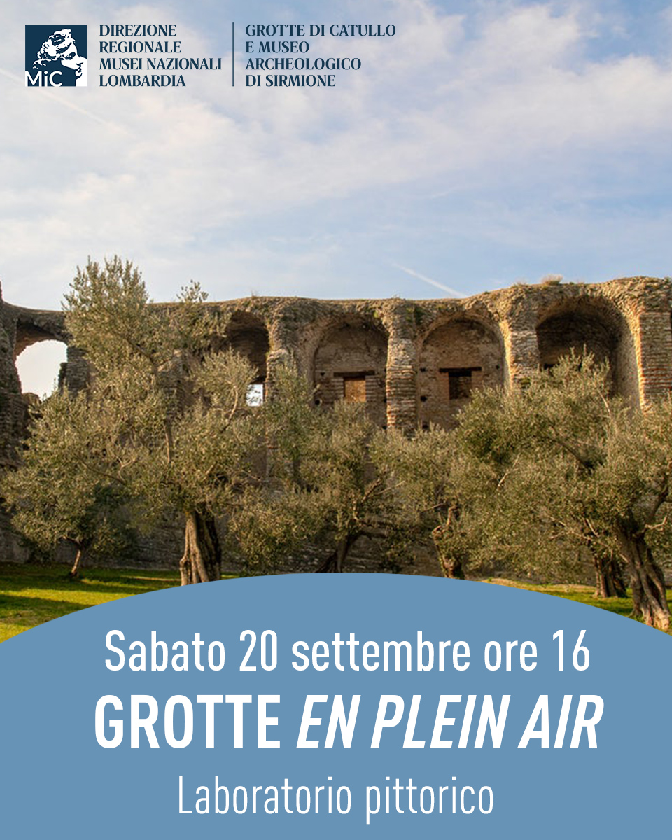 Sabato 20 settembre 2025, alle 16, alle Grotte di Catullo a Sirmione (Bs), “Grotte en plein air”, breve visita guidata a cura di Alessandro Cassaro incentrata sugli aspetti paesaggistici del parco archeologico che culminerà in un’attività di colorazione ad acquerello di uno degli scorci più suggestivi delle Grotte di Catullo. A condurre l’attività pittorica saranno Olga Tabyshkina e Olga Drozdova dell’associazione culturale artistica IMAGINE. L’attività sarà gratuita e i posti saranno limitati, per questo motivo la prenotazione è obbligatoria. Scrivici a drm-lom.grottedicatullo@cultura.gov.it o chiamaci al 030 916157.