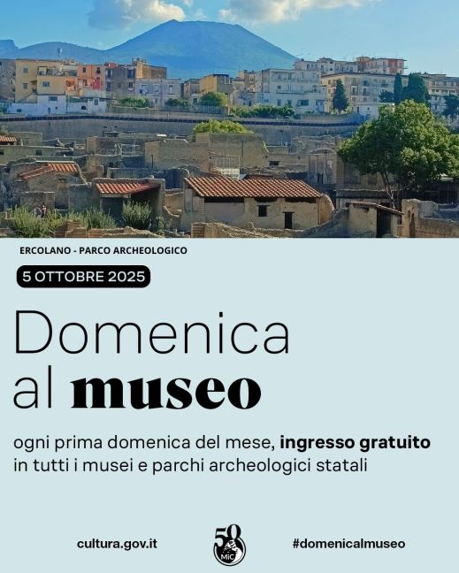 A Ercolano la #domenicalmuseo del 5 ottobre 2025 chiude idealmente un fine estate che per il parco archeologico è stata particolarmente generosa con il successo straordinario della quinta edizione de Gli Ozi di Ercole. Con la domenica con ingresso gratuito del 5 ottobrei visitatori potranno tornare a vivere la bellezza del sito di Ercolano e delle attività culturali del parco archeologico; già sold out le prenotazioni per la visita alle Terme Suburbane.