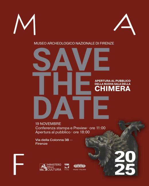 “Il Museo si addormenta”. Così il museo Archeologico nazionale di Firenze nell’ottobre 2024 annunciava l’apertura del cantiere per i lavori di rinnovamento del Maf: “la più grande operazione di ammodernamento e restyling del museo fiorentino dalla grande alluvione”, aveva dichiarato il direttore Daniele Maras, all’indomani del suo insediamento pochi mesi prima. “L’appuntamento è nel 2026, in tempo per il 60° anniversario dell’alluvione del ’66, che all’epoca colpì duramente e senza pietà l’edificio e le sue collezioni. Per allora il Museo ritornerà a splendere tra i gioielli della corona di Firenze, con l’auspicio di restituire alla città il suo ruolo di Capitale etrusca d’Italia”. (vedi Firenze. Il museo Archeologico nazionale chiude parzialmente a rotazione per la più grande operazione di ammodernamento e restyling dall’alluvione del 1966. Il direttore Maras: “Appuntamento al 2026 proprio per il 60° della piena dell’Arno” | archeologiavocidalpassato). Non è ancora il 2026, ma il risveglio del MAF è già cominciato con l’apertura della nuova sala della Chimera. Il museo Archeologico nazionale di Firenze è pronto a restituire alla città e a tutti i visitatori il capolavoro dell’arte etrusca, la Chimera di Arezzo, simbolo delle collezioni medicee, esposta in una suggestiva sala interamente rinnovata, e ora di nuovo offerta alla pubblica fruizione, dopo un accurato intervento di conservazione insieme a tre bronzetti etruschi raccolti nel 1553 nello stesso contesto di ritrovamento. La riapertura della Sala è il primo intervento del più ampio progetto di valorizzazione e riallestimento del museo Archeologico nazionale di Firenze e sarà presentata alla stampa mercoledì 19 novembre 2025.
