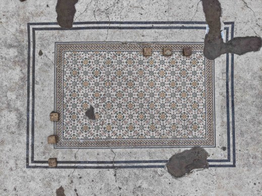 Dettaglio del mosaico “tappeto fiorito” nel giardino davanti all’ex caserma dei carabinieri ad Aquileia (foto bergomas / fondazione aquileia)
