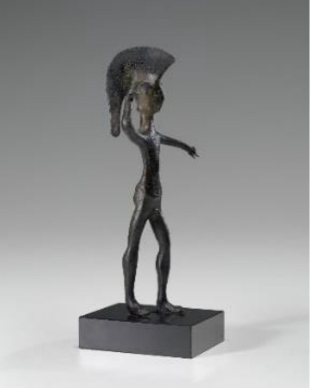 Guerriero o Marte in assalto (V sec. a.C.), Collezione Etrusco Italica. Il bronzetto che rientra a fare parte delle collezioni perma­nenti del museo civico Archeologico di Bologna, dopo la restituzione operata nel 2023 dal Virgi­nia Museum of Fine Arts di Richmond (USA) grazie all’Ufficio del Procuratore Distrettuale di New York, alla Homeland Security Investigations e al Comando Carabinieri Nucleo Tutela Patri­monio Culturale, si legge nella scheda curata da Federica Guidi, funzionaria archeologa del museo civico, rappresenta un guerriero nell’atto di scagliare una lancia, forse il dio Marte stesso, che gli Etruschi chiamavano Laran e che era particolarmente venerato in area umbra. La statuetta indossa una corta corazza che lascia scoperta la parte inferiore del corpo. Sul capo indossa un imponente elmo crestato. Si tratta di un dono votivo, deposto in un contesto sacro come un santuario o una stipe per sollecitarne il favore degli dei o come forma di ringraziamen­to per una grazia ricevuta (ex voto).