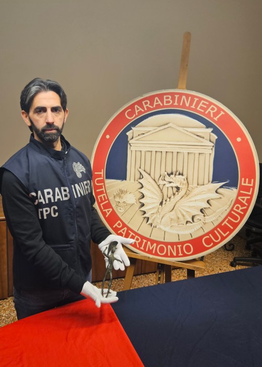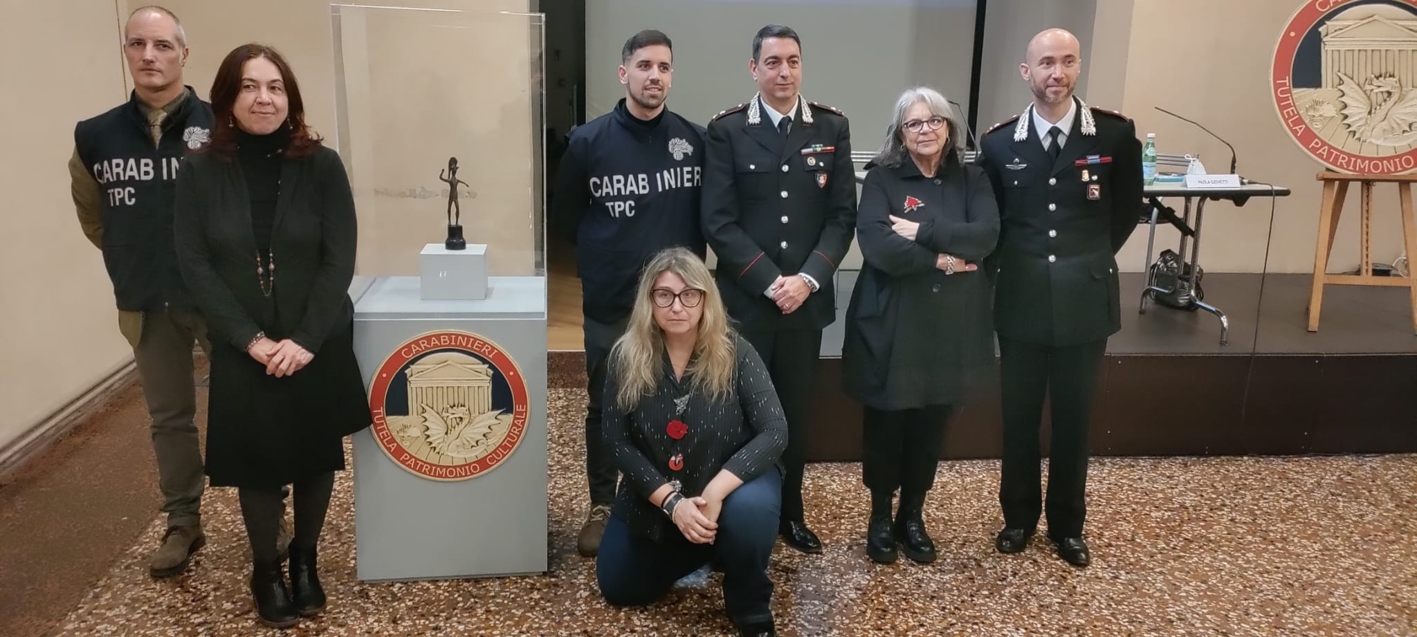 Bologna. I carabinieri del TPC hanno restituito al museo civico Archeologico una statuetta in bronzo raffigurante un guerriero etrusco parte di una refurtiva subita nel 1963, scovata negli USA