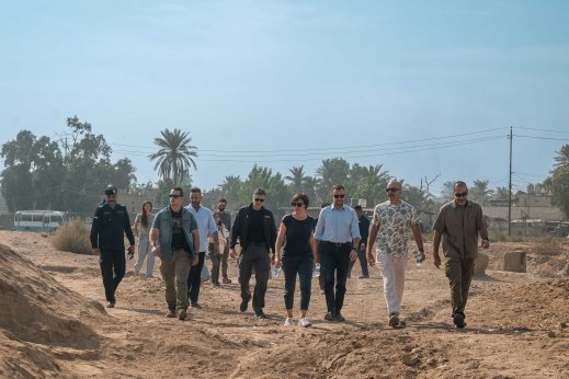 Un momento della visita dell’ambasciatore italiano a Baghdad, Niccolò Fontana, sul sito di Tell Muhammad in Iraq (foto unict)