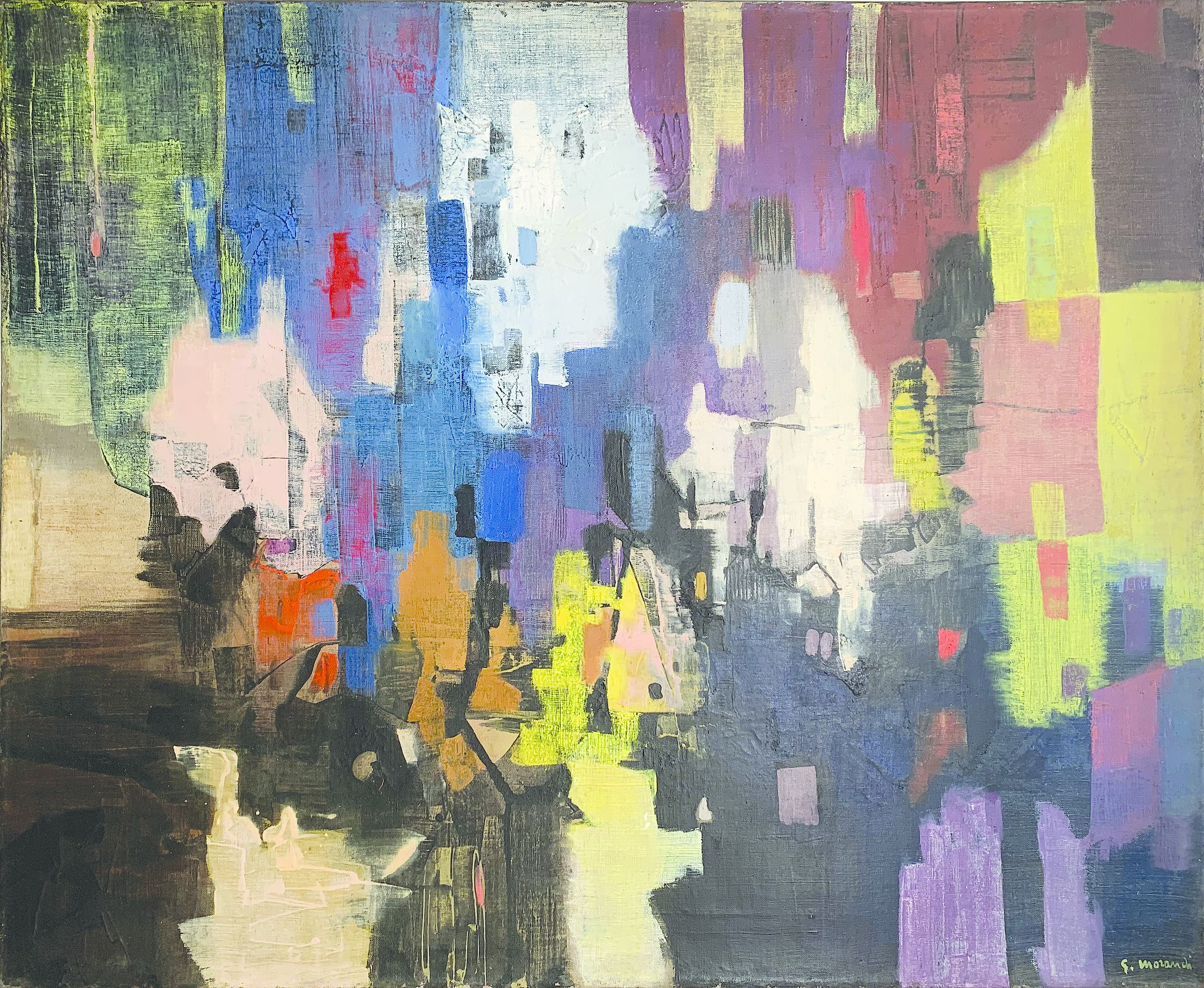 “Omaggio a New York” opera di Gino Morandis (1953-54): olio su tela esposta nell’atrio del museo Archeologico nazionale di Napoli (foto mann)