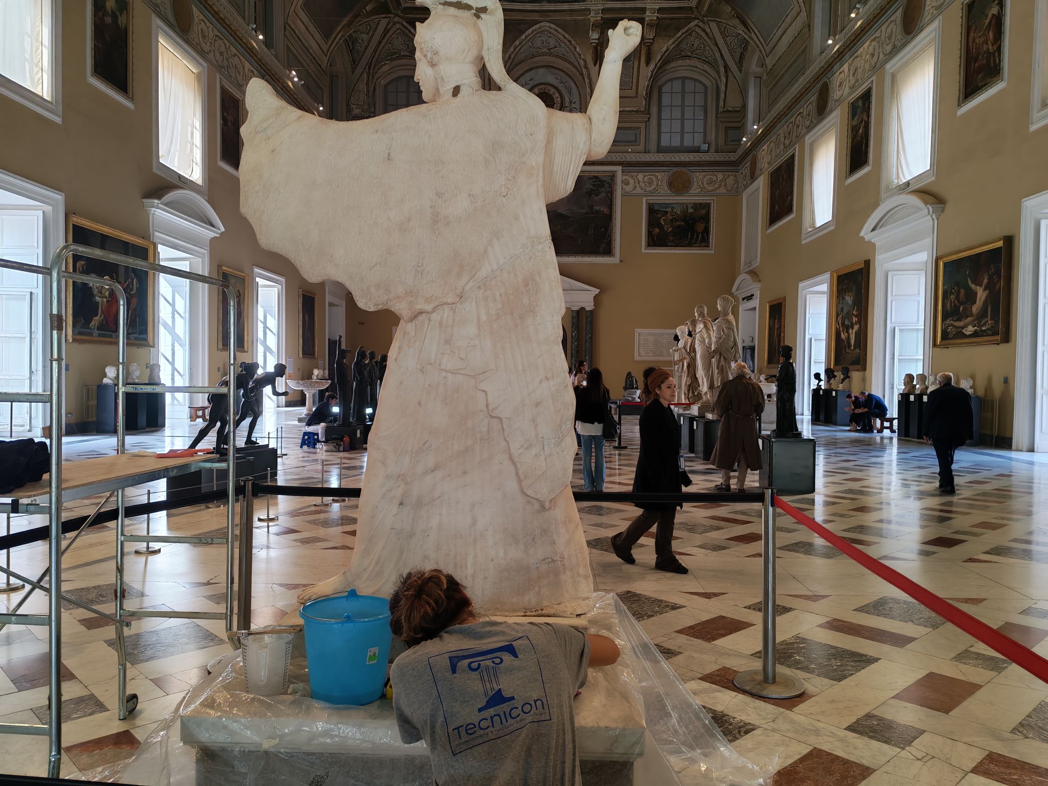 Attivita di restauro dei capolavori della Villa dei Papiri nel salone della Meridiana del Mann (foto mann)