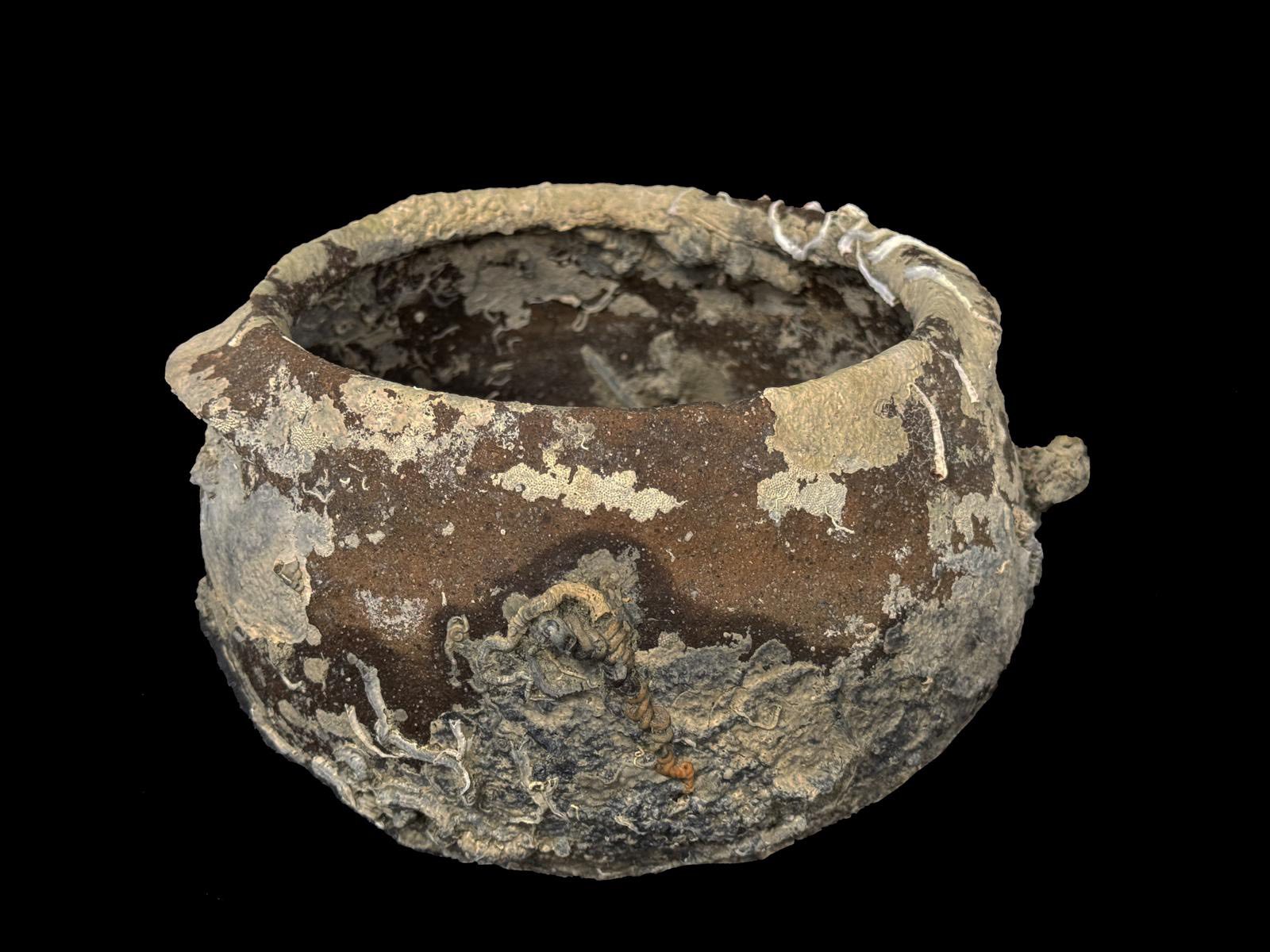 La storia. Le prime tracce del relitto furono individuate 6 anni fa a circa un miglio dalla costa siracusana, alla profondità di 70 metri, dall’ispettore onorario per il patrimonio culturale sommerso Fabio Portella, insieme a Stefano Gualtieri, nel corso di un’immersione subacquea per la mappatura dei cavi telegrafici della Pirelli posati alla fine dell’800. Nel 2021 fu individuato il vero e proprio nucleo del sito, databile in via preliminare tra il V e il VI secolo d.C., e costituito da una grande quantità di contenitori ceramici, articolati in quattro moduli di differenti grandezze e da coperchi appartenenti a tre varianti morfologiche. Dopo la segnalazione alla Soprintendenza del Mare, fu autorizzato da quest’ultima il recupero di alcuni reperti ritenuti utili per la caratterizzazione dei materiali: due olle, tre coperchi e un bollitore monoansato.