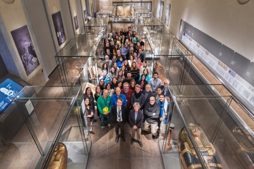 Il direttore Christian Greco e la presidente Evelina Christillin con tutto il personale del museo Egizio di Torino (foto museo egizio)