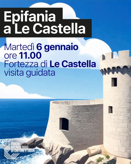 Alla scoperta di Le Castella (Kr). Il 6 gennaio 2026, alle 11, alla fortezza di Le Castella percorso di visita alla scoperta di uno dei luoghi simbolo della costa ionica calabrese. Un percorso accompagnato tra storia e paesaggio, per conoscere da vicino il passato del sito e il suo ruolo strategico nel corso dei secoli, immersi in uno scenario di grande fascino.