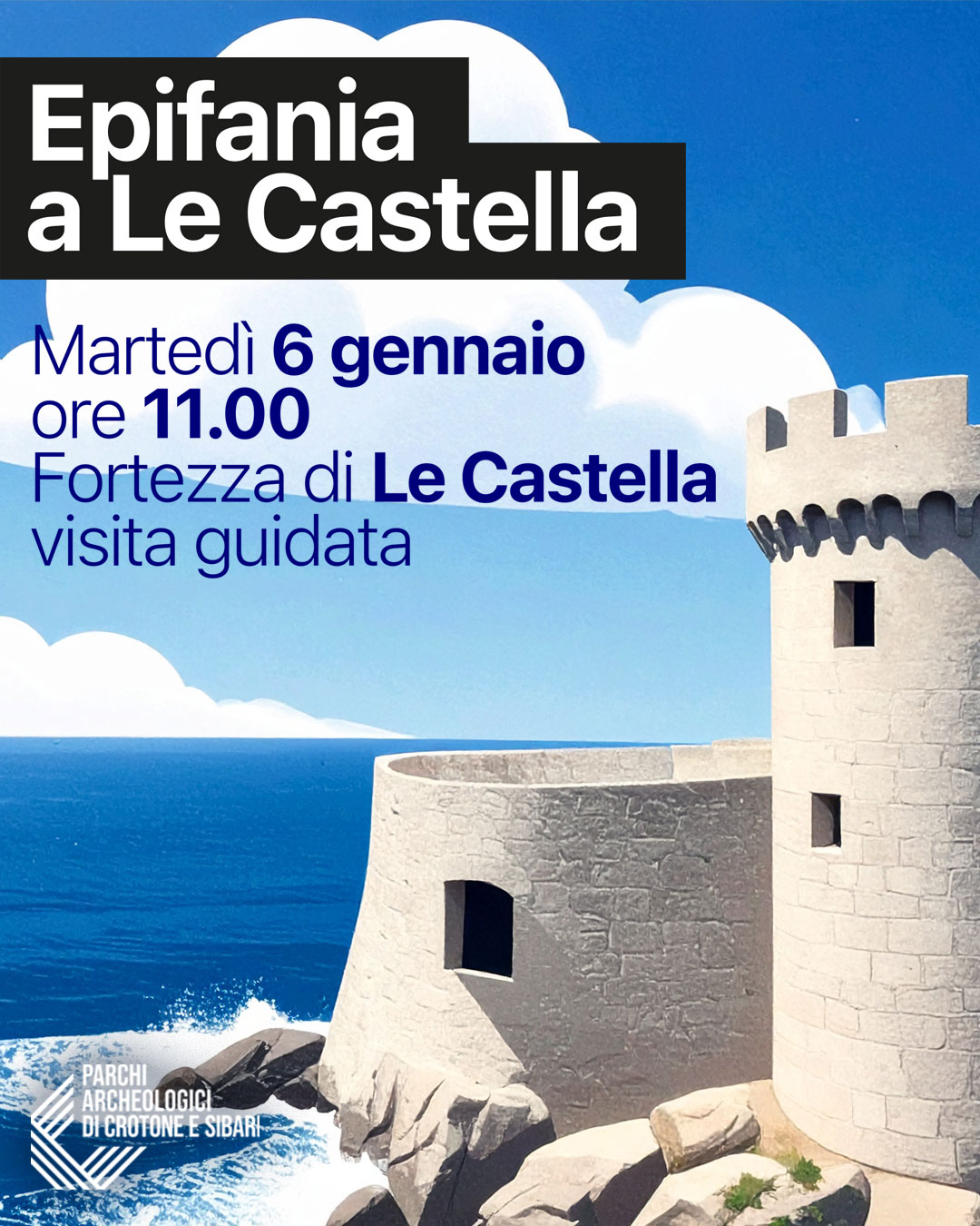 Alla scoperta di Le Castella (Kr). Il 6 gennaio 2026, alle 11, alla fortezza di Le Castella percorso di visita alla scoperta di uno dei luoghi simbolo della costa ionica calabrese. Un percorso accompagnato tra storia e paesaggio, per conoscere da vicino il passato del sito e il suo ruolo strategico nel corso dei secoli, immersi in uno scenario di grande fascino.