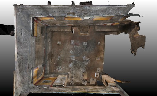 Veduta zenitale del sacello della villa suburbana di Civita Giuliana depredato dai tombaroli (foto parco archeologico pompei)