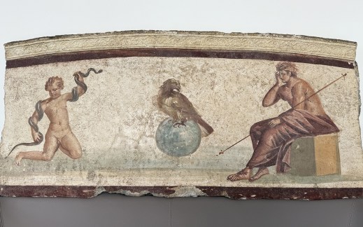 L’affresco con Ercole bambino, Zeus e Anfitrione strappato illecitamente dal sacello di Civita Giuliana e restituito dagli USA al parco archeologico di Pompei (foto parco archeologico pompei)