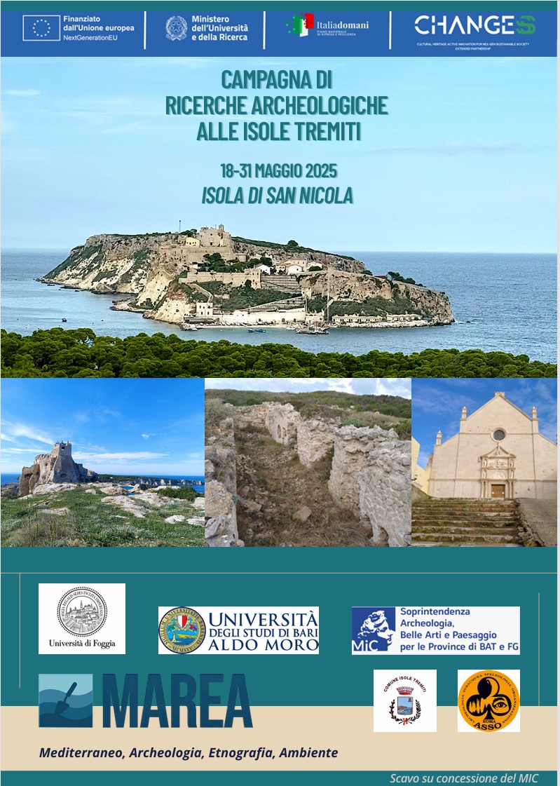 Tra il 18 e il 31 maggio 2025 si è svolta la prima campagna di indagini archeologiche sull’isola di San Nicola (arcipelago delle Tremiti, Fg), condotta dall’università di Foggia (Danilo Leone e Maria Turchiano) in collaborazione con ASSO Ets, l’università di Bari (Giuliano Volpe) e la soprintendenza Archeologia Belle arti e Paesaggio per le province di Foggia e BAT (Anita Guarnieri, Donatella Pian). Alla missione hanno partecipato allievi della Scuola di specializzazione in Beni archeologici UniBa-UniFg, studenti, dottorandi e assegnisti delle due Università. A chiusura dell’anno 2025, il regista Massimo D’Alessandro ha prodotto un breve video che sintetizza la prima campagna di indagine e scavo sull’isola di San Nicola, nell’arcipelago delle Tremiti, svolta nel maggio 2025.