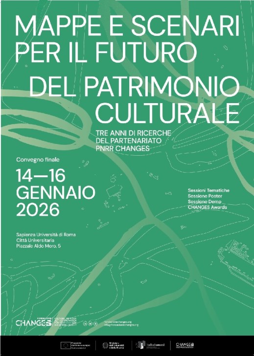 Dal 14 al 16 gennaio 2026 alla Città Universitaria della Sapienza Università di Roma, si tiene il convegno “Mappe e scenari per il futuro del patrimonio culturale. Tre anni di ricerche del Partenariato PNRR CHANGES”, che propone un ampio programma scientifico e divulgativo dedicato all’innovazione nel campo del patrimonio culturale, e rappresenta il momento conclusivo del progetto CHANGES (Cultural Heritage Innovation for Next-Gen Sustainable Society), finanziato dal ministero dell’Università e della Ricerca nell’ambito del Piano Nazionale di Ripresa e Resilienza (PNRR). Organizzato dalla Fondazione CHANGES, con il ruolo di Hub del progetto, il convegno riunisce la comunità scientifica e gli stakeholder del più ampio ecosistema nazionale impegnato nella ricerca, nella formazione e nel trasferimento tecnologico applicati alla cultura. Nelle tre giornate di lavori, il convegno prevede 25 sessioni tematiche e oltre 250 contributi, tra presentazioni scientifiche, dimostrazioni tecnologiche e installazioni interattive. Attraverso i contributi dei gruppi di ricerca dei nove Spoke del Partenariato, l’iniziativa intende condividere con la comunità scientifica, le istituzioni, il mondo produttivo e i territori i risultati raggiunti in tre anni di attività, offrendo una visione integrata e prospettica sulle trasformazioni in atto e sulle sfide future del patrimonio culturale. Il programma completo su https://www.fondazionechanges.org/convegno-finale/