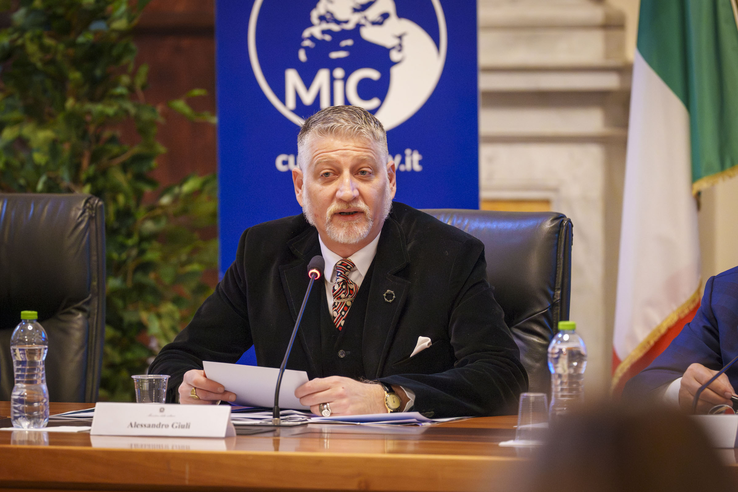 Presentazione della mostra “Etruschi e Veneti” al MIC: il ministro Alessandro Giuli (foto di E. A. Minerva e A. Sbaffi – MIC)