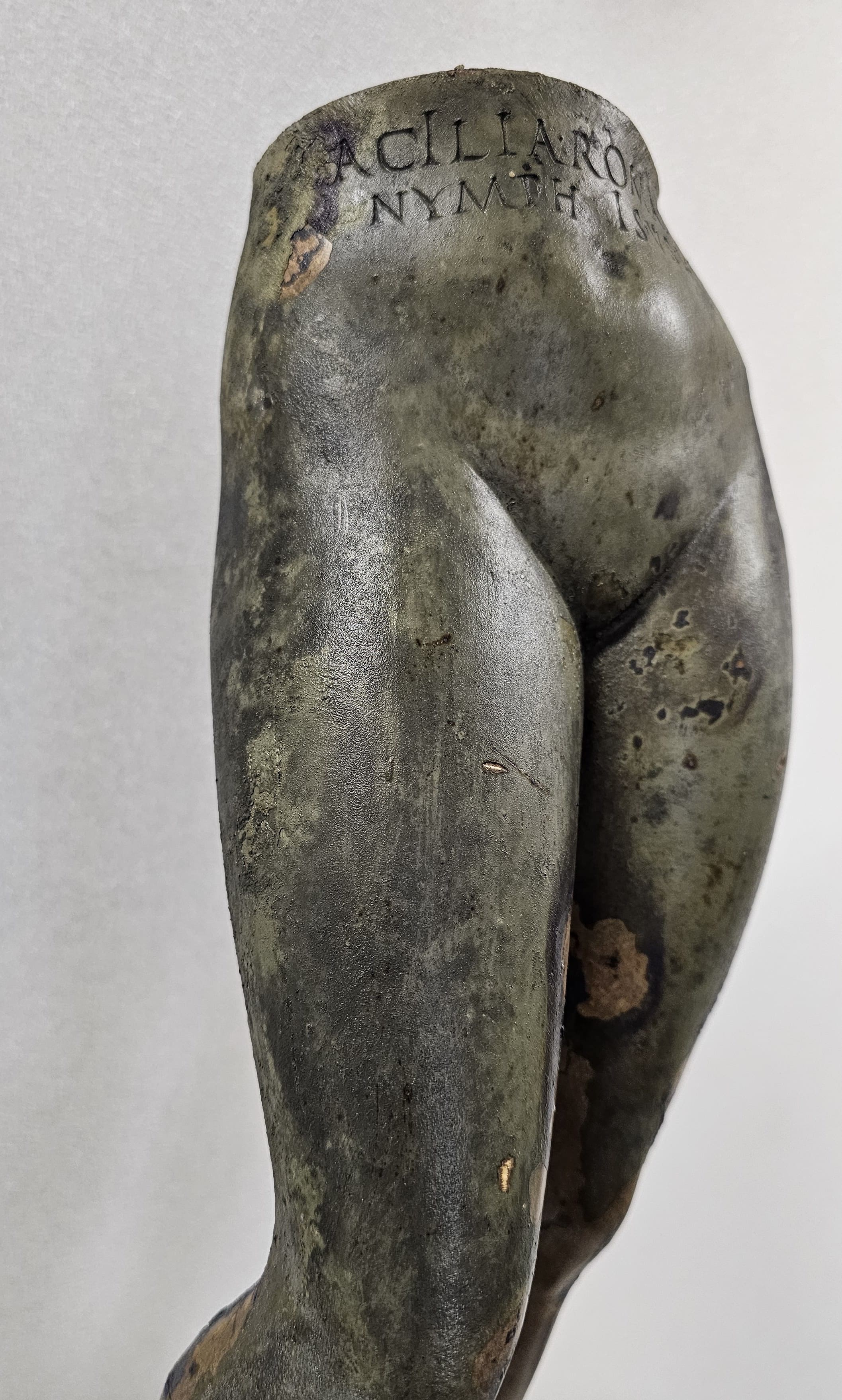 Gambe di donna con iscrizione alle Ninfe dallo scavo del Bagno Grande di San Casciano dei Bani (foto sabap-si)