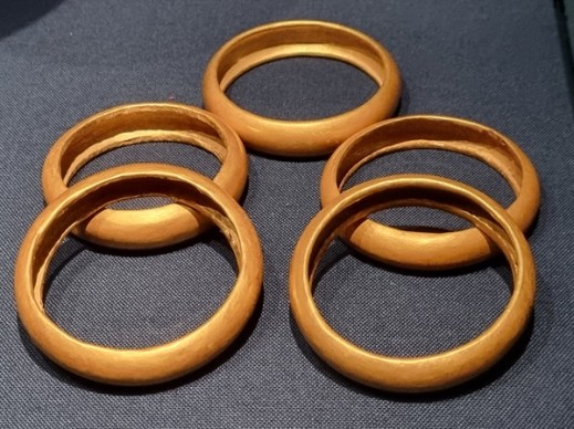 Cinque braccialetti d’oro di Sekhemkhet (III dinastia, Abtico Regno) dalla piramide a gradoni di Saqqara, conservata al museo del Cairo (foto graziano tavan)