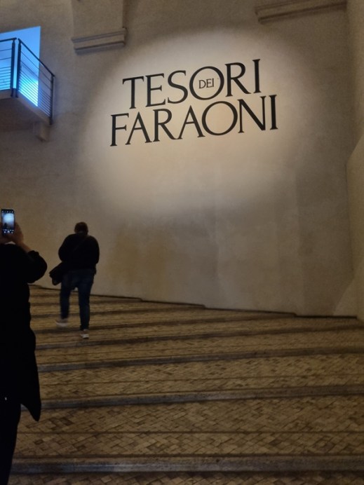 La grande rampa che porta al primo piano delle Scuderie del Quirinale dove è allestita la mostra “Tesori dei Faraoni” (foto graziano tavan)