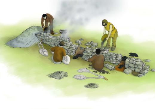 Ricostruzione di antichi forni fusori (disegno di Livia Stefan – Archivio Ufficio beni archeologici PAT)