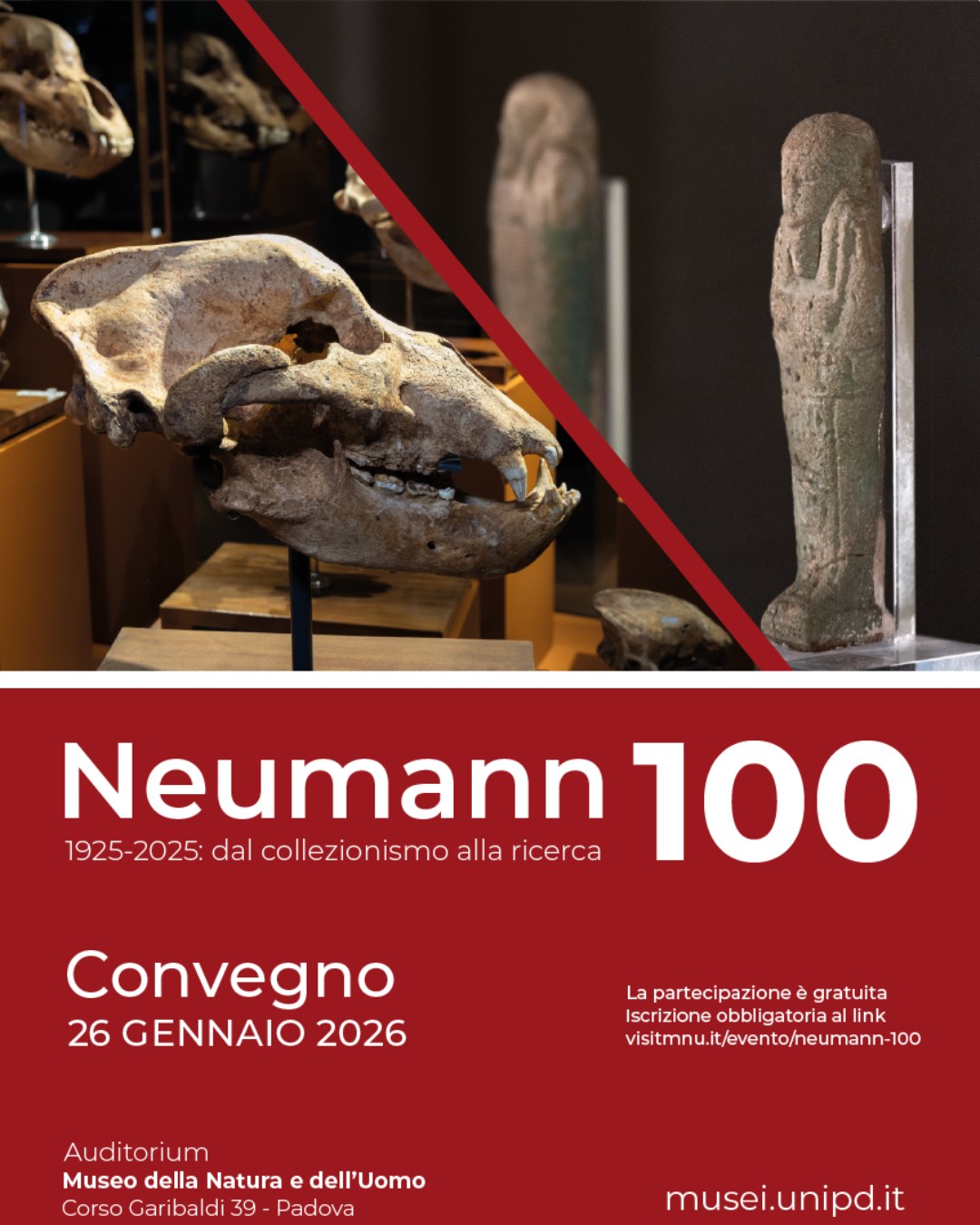 Al teatro Botanico all’Orto botanico di Padova, lunedì 26 gennaio 2026, dalle 9.30 alle 18, il convegno “Neumann 100. 1925-2025: dal collezionismo alla ricerca”, organizzato da Centro di Ateneo per i Musei, dipartimento dei Beni culturali, dipartimento di Geoscienze, dipartimento di Biologia, museo della Natura e dell’Uomo, museo di Scienze archeologiche e d’Arte. La partecipazione è gratuita, previa registrazione al form di prenotazione. Il convegno è dedicato a Eugenio Neumann (1847-1928), commerciante triestino, che nel corso della sua vita raccolse una straordinaria collezione con decine di migliaia di beni. In contatto anche con antiquari toscani, collezionisti francesi, studiosi tedeschi e di altri ambiti internazionali, partecipò in prima persona a numerose indagini nelle grotte del Carso, raccogliendo presso la sua abitazione di Trieste molti reperti di interesse antropologico, paletnologico, archeologico, geologico, paleontologico e mineralogico. A cento anni dall’acquisizione dell’intera collezione da parte dell’università di Padova, avvenuta nel 1925, il convegno intende riportare l’attenzione sulle diverse anime di questa raccolta, confluita poi nei vari musei scientifici ora riuniti nel museo della Natura e dell’Uomo e anche nel museo di Scienze Archeologiche e d’Arte. Agli interventi del convegno seguono due visite guidate: al museo di Scienze Archeologiche e d’Arte di Palazzo Liviano, e alle collezioni di Antropologia e di Geologia e Paleontologia del museo della Natura e dell’Uomo.