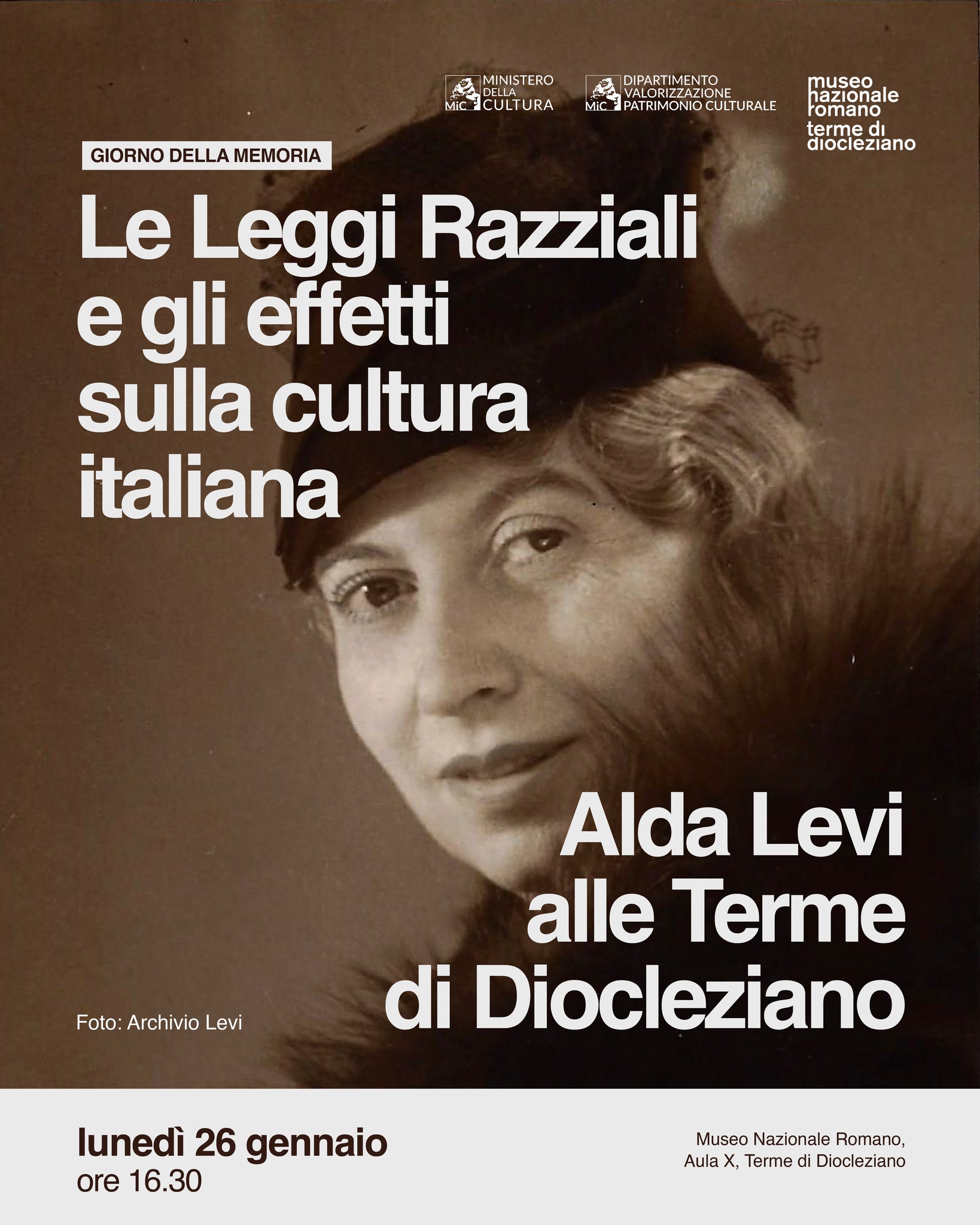 Il 26 gennaio 2026 in occasione del Giorno della Memoria, il museo nazionale Romano ospita, alle 16.30, alle Terme di Diocleziano il pomeriggio di studi “Le Leggi Razziali e gli effetti sulla cultura italiana. Alda Levi alle Terme di Diocleziano”. Prima donna archeologa a divenire funzionaria di una Soprintendenza, nel 1915, Alda Levi, moglie di Vittorio Spinazzola, già soprintendente agli Scavi e ai Musei di Napoli, durante l’occupazione nazista si trasferì sotto falsa identità a Roma; qui fu soccorsa da Salvatore Aurigemma, dirigente della Soprintendenza di Roma che la nascose presso il Museo delle Terme di Diocleziano e poi presso un istituto religioso. Morì a Roma, nel 1950. Prenotazione al link: https://www.eventbrite.it/…/le-leggi-razziali-e-gli…. Il pomeriggio di studi si svolge in sinergia con le iniziative curate per il Giorno della Memoria dall’Istituto nazionale di Geofisica e Vulcanologia (INGV) e dal Consiglio Nazionale delle Ricerche (CNR) nell’ambito del progetto “Pagina della Memoria. Pietra d’inciampo per la scienza e la cultura”. Intervengono Aldo Winkler, responsabile del Laboratorio di Paleomagnetismo dell’INGV e coordinatore del progetto “Pagina della memoria”; Anna Ceresa Mori, già funzionaria della soprintendenza Archeologica della Lombardia, responsabile della tutela della città di Milano e direttrice dell’Antiquarium “Alda Levi”, di cui ha curato l’intitolazione alla studiosa e l’allestimento; Antonella Ferraro, funzionaria archeologa del museo nazionale Romano e responsabile dell’Archivio storico del Museo che, con la presentazione dei documenti di archivio, unirà idealmente Alda Levi, Vittorio Spinazzola e Salvatore Aurigemma.
