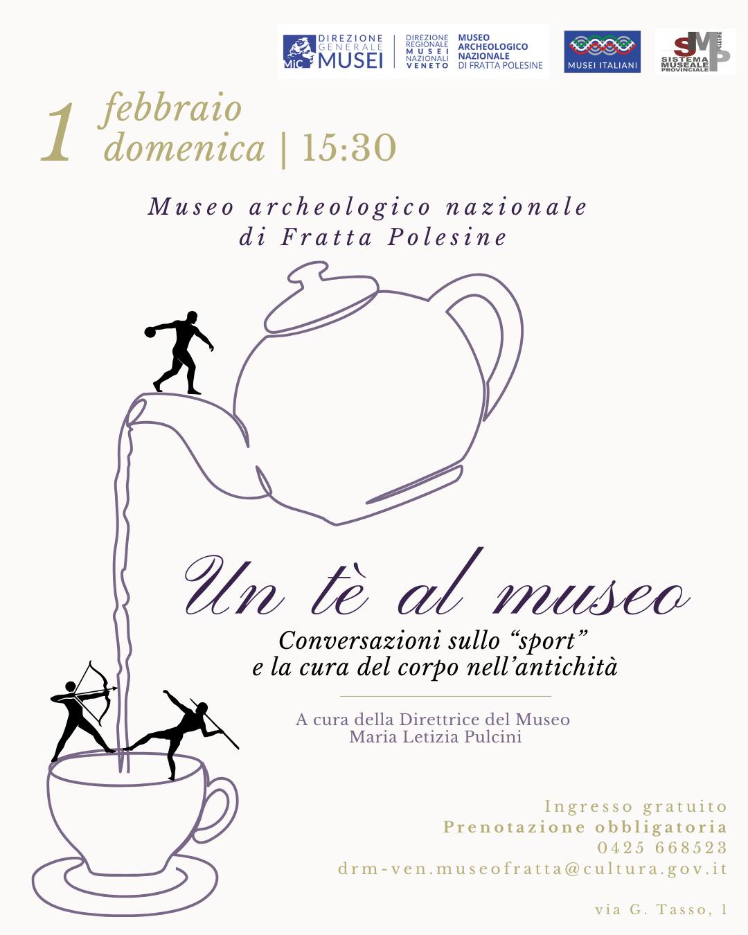 Come si allenavano e come si prendevano cura del corpo le società del passato? Se ne parla domenica 1° febbraio 2026, alle 15.30, al museo Archeologico nazionale di Fratta Polesine (Ro) nel nuovo incontro del ciclo “Un Tè al Museo” che coniuga il piacere di un momento conviviale con l’approfondimento di temi legati all’archeologia e alla storia antica. Il nuovo appuntamento, “Conversazioni sullo “sport” e la cura del corpo nell’Antichità”, offre al pubblico l’occasione di esplorare il modo in cui le società del passato concepivano il benessere fisico, la preparazione all’attività fisica e le pratiche di cura del corpo. A guidare l’incontro sarà Maria Letizia Pulcini, direttrice del museo, che accompagnerà i partecipanti in un percorso di riflessione tra fonti letterarie e iconografiche e reperti archeologici. Come di consueto, “Un Tè al Museo” si svolgerà in un clima informale e accogliente: una tazza di tè accompagnerà il dialogo tra la direttrice e il pubblico, favorendo la condivisione e il confronto su temi che uniscono archeologia e attualità. La partecipazione è gratuita con prenotazione obbligatoria (tel. 0425668523; drm-ven.museofratta@cultura.gov.it) fino a esaurimento posti. Per evitare sprechi, ai/alle partecipanti è consigliato di portare con sé la propria tazza!