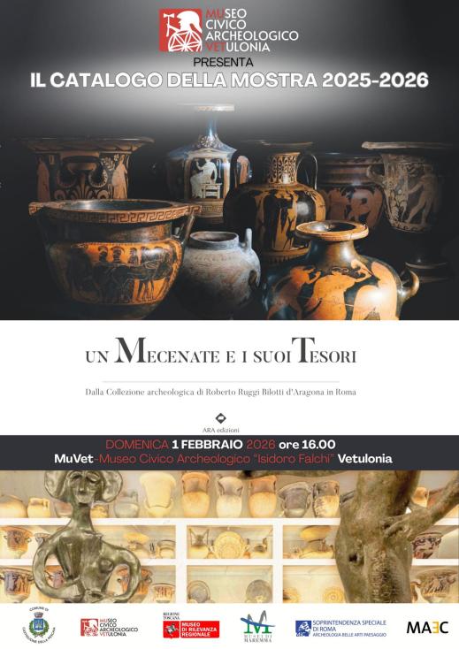 In occasione del secondo appuntamento della Festa dei Musei di Maremma, domenica 1° febbraio 2026, al museo civico Archeologico “Isidoro Falchi” di Vetulonia (Castiglione della Pescaia, Gr), alle 16, presentazione del catalogo della mostra “UN MECENATE E I SUOI TESORI. La Collezione archeologica di Roberto Bilotti Ruggi d’Aragona in Roma”, con la quale il MuVet ha celebrato i 25 anni dalla sua nascita. Il libro è frutto di un lungo e importante lavoro portato avanti da un gruppo internazionale di studiosi che, per la prima volta, permette al grande pubblico di conoscere un insieme di opere di straordinaria rilevanza per la storia del collezionismo archeologico in Italia, a partire da opere di arte antica fino all’arte moderna. Alla presentazione Intervengono Elena Nappi, sindaco di Castiglione della Pescaia; Simona Rafanelli, direttrice scientifica MuVet; Vincent Jolivet, CNRS-Parigi; Alessandro Bartoletti e Filippo Guidarelli, ARA edizioni. Apertura straordinaria del museo fino alle 18. Ingresso libero fino ad esaurimento posti. Brindisi offerto da Tenuta Fertuna. Info e contatti: 0564 927245; museo.vetulonia@comune.castiglionedellapescaia.gr.it.