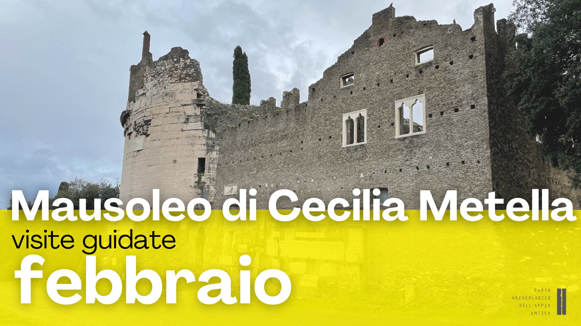 A febbraio 2026 nuovi appuntamenti con le visite guidate a cura dal personale del parco archeologico dell’Appia antica (Roma), che conducono alla scoperta di quello che forse è il monumento più identificativo del parco archeologico dell’Appia Antica: il complesso che comprende il Mausoleo di Cecilia Metella, il Castrum Caetani e la chiesa di San Nicola. Le visite guidate sono in programma domenica 8 febbraio, alle 11 e alle 15; sabato 14 febbraio, alle 11 e alle 15, con Metella Unexpected: una speciale visita guidata alla scoperta della parte nascosta del Mausoleo di Cecilia Metella-Castrum Caetani. In questa visita guidata il monumento simbolo dell’Appia svela il suo volto segreto. È un’occasione unica per visitare il fronte nord, solitamente chiuso al pubblico, ed ammirarne l’imponenza. Domenica 22 febbraio, alle 11 e alle 15; e sabato 28 febbraio, alle 11 e alle 15. Ingresso in via Appia Antica 161, Roma