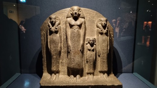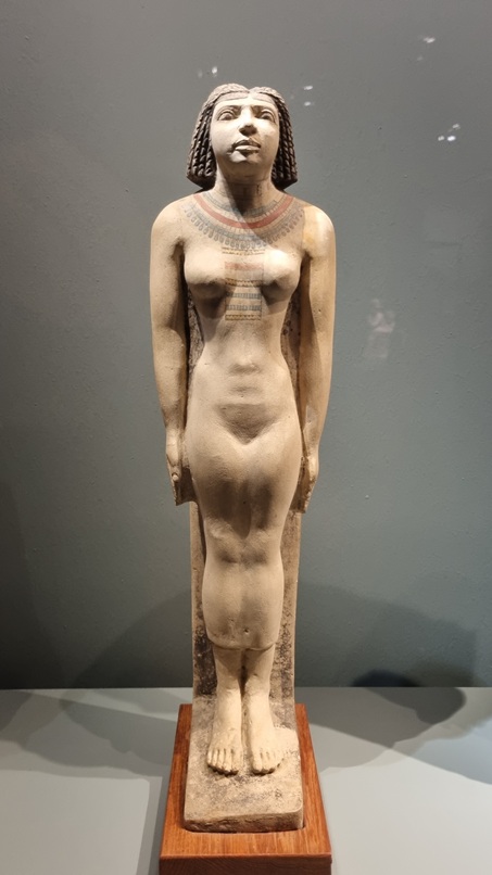 Ecco la statua del nomarca (sindaco) Ukh-Hotep e la sua famiglia in granodiorite (XII dinastia, Medio Regno), dalla Tomba di Ukh-Hotep, nella necropoli di Meir (Medio Egitto): il gruppo scultoreo con le sue iscrizioni conferma il processo di decentralizzazione del potere durante il quale i governatori provinciali ottennero il diritto a esercitare l’autorità assoluta del faraone nei rispettivi territori di essere sepolti nei pressi delle loro residenze. E poi c’è la statua di Hekenu seduta in pietra calcarea dipinta (V dinastia, Antico Regno), dalla Tomba di Ranefer ed Hekenu, a Saqqara: un caso raro, nell’Antico Regno, che una donna, Hekenu è la moglie di un potente sacerdote di Ptah, avesse una statua tutta per sé.