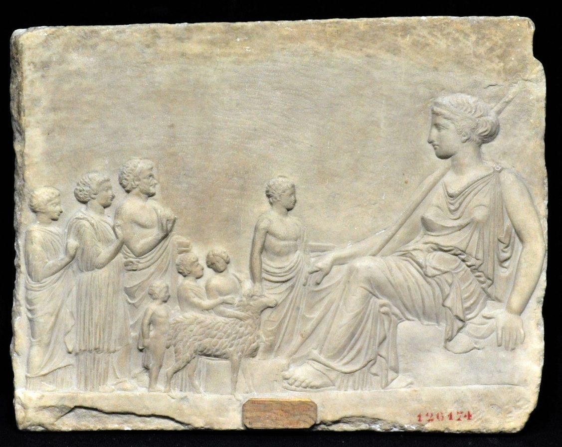 Rilievo votivo attico, originale greco degli inizi del IV sec. a.C., da Pompei, conservato al museo Archeologico nazionale di Napoli (foto mann)