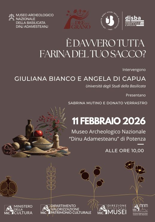 Mercoledì 11 febbraio 2026 a Potenza, alle 10, nella sala del Cortile di Palazzo Loffredo, sede del museo Archeologico nazionale “Dinu Adamesteanu”, la conferenza “È davvero tutta farina del tuo sacco?” con Giuliana Bianco e Angela Di Capua, professoresse di Chimica analitica dell’università della Basilicata, primo intervento del ciclo di conferenze “Grano e Cibo”, nell’ambito della mostra “Le dee del grano. Terra, radici, memoria e rinascita”. Sarà presente anche personale del POLiS (Centro di Ateneo per i Percorsi di Orientamento, Lifelong learning e supporto agli Studenti) per eventuali informazioni sull’offerta didattica dell’ateneo lucano. In programma discussione della tematica affrontata con domande dei partecipanti, la visita guidata alla mostra “Le dee del grano. Terra, radici, memoria e rinascita” e delle sale museali (durata prevista di due ore e mezza, circa). La conferenza è rivolta agli istituti superiori di secondo grado e hanno come scopo l’orientamento in uscita dei ragazzi, l’ampliamento delle conoscenze su tematiche trasversali che traggono spunto dalla coltivazione del grano e, nel caso di progetti FSL concordati con l’Istituto alberghiero e agrario di Potenza, lo sviluppo di competenze specifiche. Il seminario illustrerà un approccio metodologico basato sull’uso di tecnologie analitiche avanzate, come la spettrometria di massa, per valorizzare la produzione locale sia dal punto di vista economico che etico. L’utilizzo di questa tecnica analitica ci permette di ottenere “impronta chimica” delle materie prime e consente quindi di tutelare la qualità, l’origine e la sicurezza dei prodotti agroalimentari, offrendo un valore aggiunto per i produttori e un maggior grado di fiducia per i consumatori.
