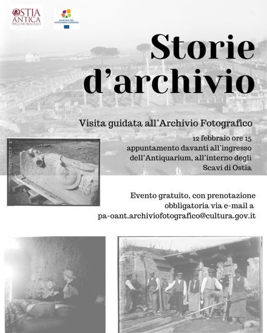 Giovedì 12 febbraio 2026, alle 15, il parco archeologico di Ostia antica propone “Storie d’Archivio”: visita guidata all’Archivio Fotografico del Parco archeologico di Ostia antica con Marina Lo Blundo. Appuntamento davanti all’Antiquarium all’interno degli Scavi di Ostia (circa 10 minuti a piedi dall’ingresso). Evento gratuito con prenotazione obbligatoria a pa-oant.archiviofotografico@cultura.gov.it. I partecipanti devono ritirare il biglietto gratuito in biglietteria all’ingresso degli Scavi. Vera memoria storica degli Scavi, fondato nel 1909 da Dante Vaglieri, l’Archivio Fotografico degli Scavi di Ostia racconta attraverso le sue migliaia di immagini tutto lo sviluppo degli scavi e dei restauri di Ostia antica (e non solo) dal 1909 fino a noi. Nel corso della visita, condotta all’interno dell’Archivio, dalla responsabile Marina Lo Blundo, ci si concentrerà sulle fotografie storiche, impresse su lastra di vetro e sul fondo fotografico Raissa Calza, preziosissimo e che presto sarà oggetto di una grande opera di valorizzazione.