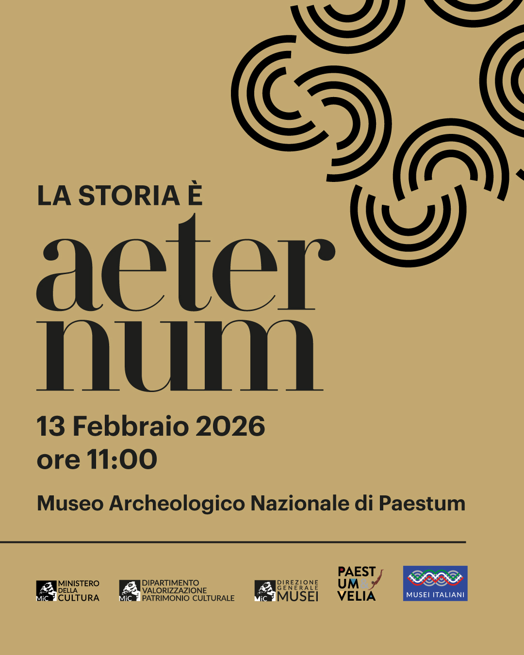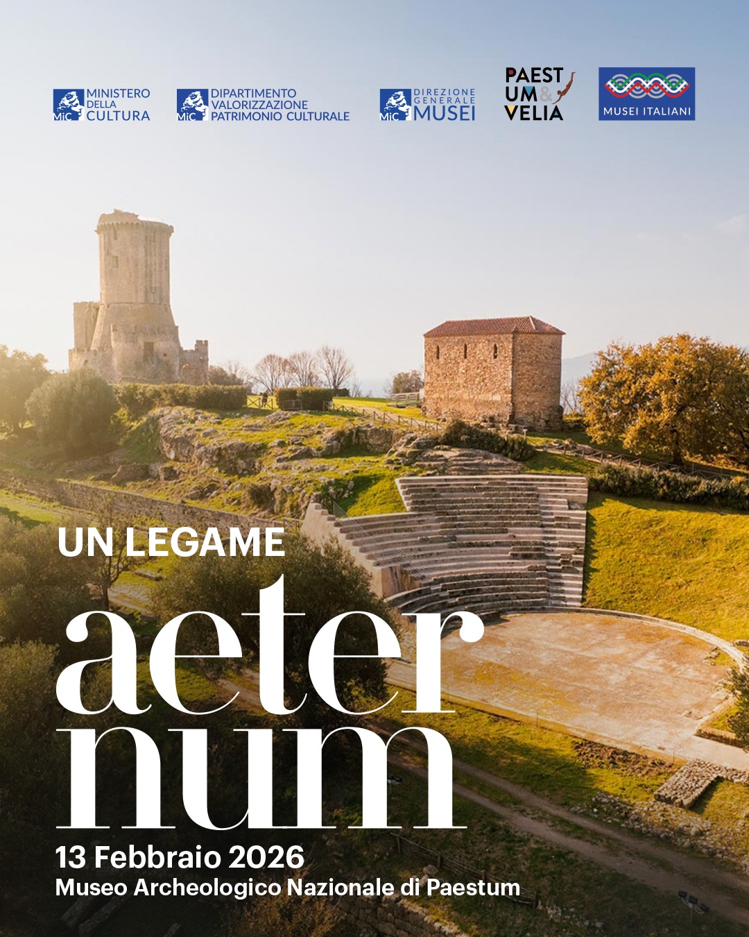 Ci sono luoghi che non appartengono a un solo tempo. Luoghi che continuano a parlare, a trasformarsi, a generare domande e meraviglia. Il 13 Febbraio 2026, alle 11, al museo Archeologico nazionale di Paestum, i parchi archeologici di Paestum e Velia invitano il pubblico a partecipare a “Aeternum” un evento speciale, pensato come un momento di incontro, racconto e condivisione. Un appuntamento che non nasce per svelare subito, ma per aprire uno spazio di ascolto e di attesa, in cui la storia viene osservata non come qualcosa di concluso, ma come una presenza viva, capace di dialogare con il presente. Durante l’evento verrà presentata una nuova visione legata al modo di vivere e attraversare il patrimonio archeologico: una riflessione sul tempo, sulla memoria e sul legame profondo che unisce le persone ai luoghi della storia. Un filo conduttore accompagnerà l’incontro e ne anticipa il senso più profondo: la storia è Aeternum. Un’espressione che racchiude il valore di ciò che dura, di ciò che ritorna, di ciò che non si esaurisce in una sola visita, ma continua a esistere attraverso lo sguardo e l’esperienza di chi sceglie di esserci. L’evento è aperto a visitatori, appassionati e a tutti coloro che sentono che la storia non è solo racconto del passato, ma scelta del presente.