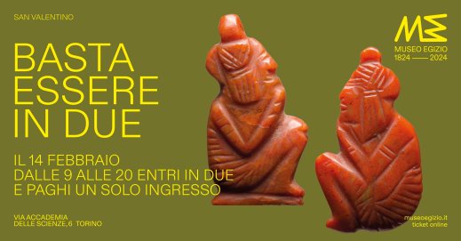 Un San Valentino speciale al museo Egizio di Torino: ingresso dedicato per gli innamorati, inaugurazione di una mostra, e concerto serale. L’invito della direzione è di andare a visitare il museo Egizio con una persona a cui si vuole bene: si potrà entrare in due pagando un solo biglietto di ingresso. Questo il link per le prenotazioni: https://egizio.museitorino.it/…/ingresso-museo…/…