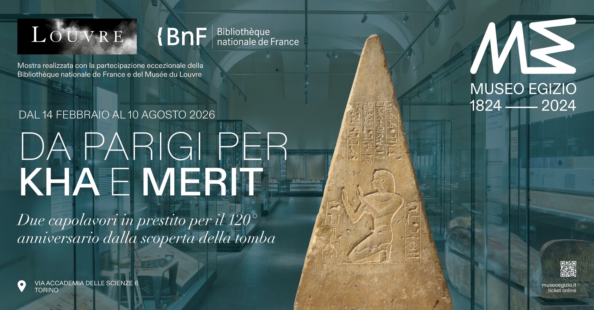 Centovent’anni fa, il 15 febbraio 1906, Ernesto Schiaparelli, l’allora direttore del museo Egizio scopriva nella necropoli di Deir el-Medina la tomba intatta di Kha e Merit (TT8), una coppia di sposi dell’antico Egitto che ha attraversato i millenni senza mai separarsi.  Proprio a San Valentino, il Museo Egizio celebra questa straordinaria scoperta: dal 14 febbraio arrivano per la prima volta a Torino, dalla Francia, il Pyramidion di Kha e il Libro dei Morti di Merit, per riunire dopo 120 anni gli elementi separati che provengono dalla tomba e dalla cappella funeraria di Kha e Merit, recentemente oggetto di un nuovo allestimento in Museo. Vissuti 3500 anni fa a Deir el-Medina, il villaggio degli artigiani che decoravano le tombe dei faraoni nella Valle dei Re, i due sposi della classe dirigente riposano al museo Egizio, circondati da 460 oggetti: sarcofagi dorati, mobili eleganti, tessuti finissimi, boccette di profumi e unguenti n vetro e alabastro, persino il Senet, uno dei giochi da tavolo più antichi del mondo. Ma con l’arrivo dei due reperti parigini, il racconto si completa, in un percorso che intreccia collezionismo antiquario e ricerca archeologica per dar vita ad un racconto biografico, fondato su dati materiali e documentari. “Inauguriamo il 2026 con questi prestiti eccezionali che testimoniano la forza delle relazioni scientifiche e culturali che il museo Egizio ha intessuto in questi anni con le istituzioni museali europee”. dichiara Christian Greco, direttore del museo Egizio. “Il Pyramidion e il Libro dei Morti di Merit ci permettono di completare, a 120 anni dalla scoperta, la narrazione di uno dei ritrovamenti più importanti della nostra collezione. Queste collaborazioni dimostrano che i musei sono nodi di una rete internazionale al servizio del pubblico”.