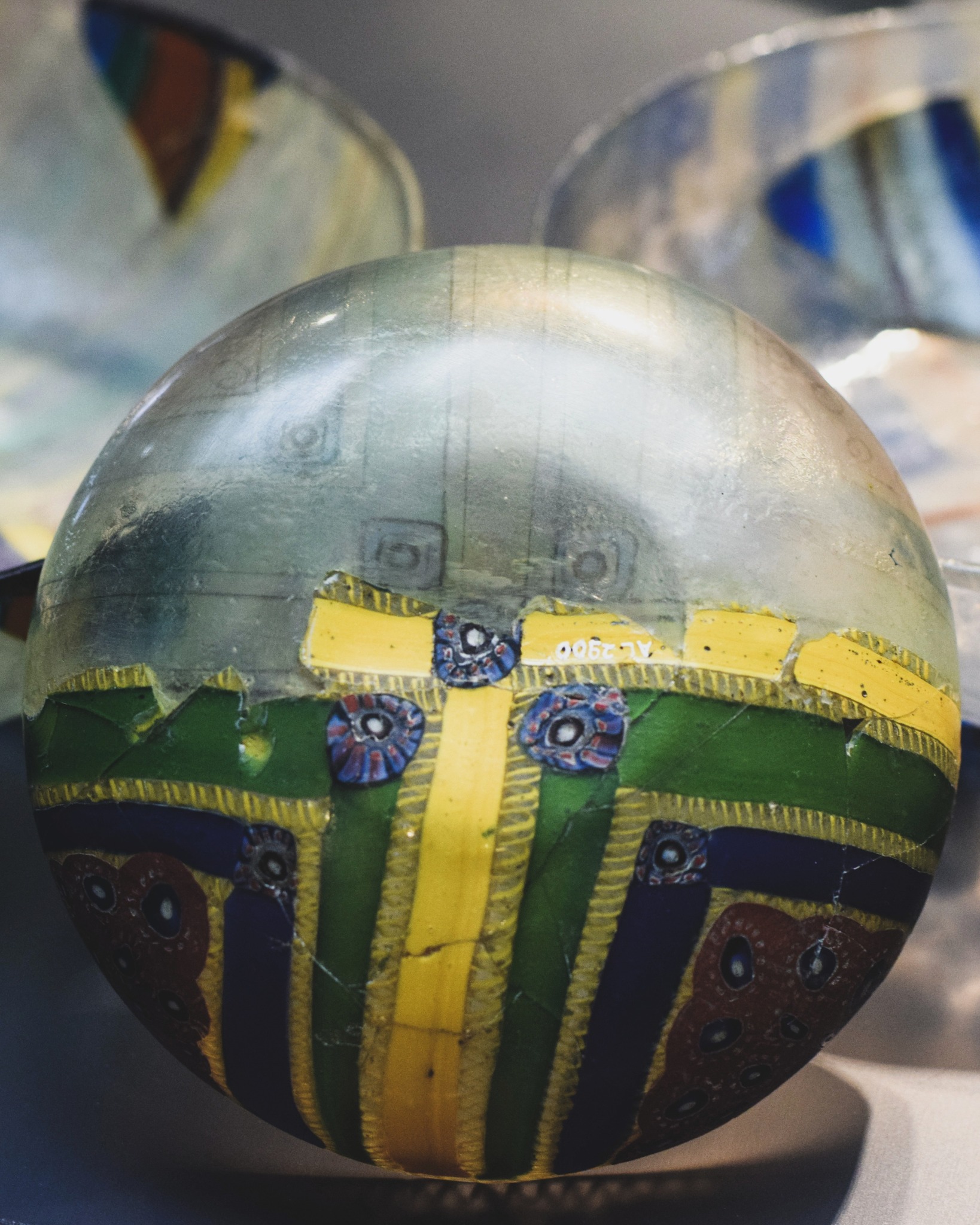 Coppa murrina a millefiori di fondo verde scuro, ricomposta e integrata (I secolo d.C.) conservata al museo Archeologico nazionale di Altino (foto parco archeologico altino)