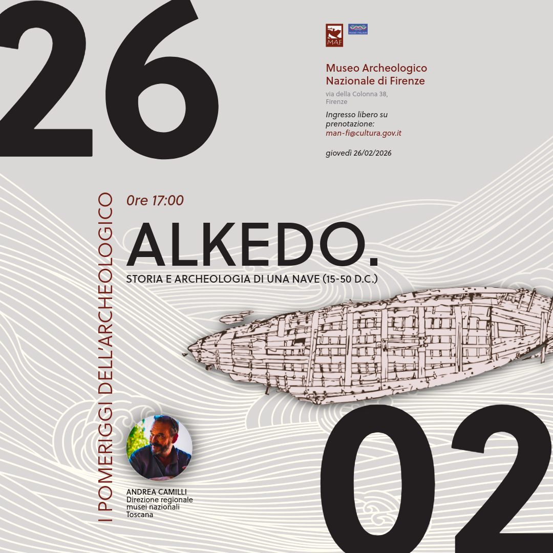 Per il ciclo “I Pomeriggi dell’Archeologico”, giovedì 26 febbraio 2026, alle 17, al museo Archeologico nazionale di Firenze, in via della Colonna 38, presentazione del libro “Alkedo. Storia e archeologia di una nave (15-50 D.C.)” di Andrea Camilli, direzione regionale Musei nazionali Toscana. Ingresso libero con prenotazione obbligatoria a man-fi@cultura.gov.it. Il Cantiere delle Navi Antiche di Pisa ha rappresentato un punto miliare nella archeologia marittima e navale, e nello sviluppo delle tecniche di ricerca e restauro. A distanza di 27 anni dalla scoperta, di 20 dal recupero, e di 6 anni dalla musealizzazione, presentiamo l’edizione definitiva della più famosa e meglio conservata imbarcazione, l’Alkedo, comprensiva di un esaustivo studio del contesto di rinvenimento e della suppellettile di bordo. Allo studio dei contesti e dell’imbarcazione si affiancano studi specialistici sulle analisi fisico-chimiche effettuate e l’analisi delle modalità di restauro e musealizzazione della nave. Un’ opera che ha richiesto molti anni di studio ed analisi da parte di una equipe internazionale, e che viene edita in una forma che unisce la correttezza scientifica con un linguaggio che la rende accessibile al più ampio pubblico.