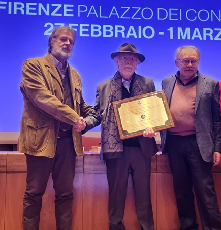 tourismA 2026: Sergio Fontana, presidente della Fondazione archeologica canosina, con il premio Francovich, tra il presidente SAMi Marco Valenti, e l’ex presidente Paul Arthur (foto graziano tavan)