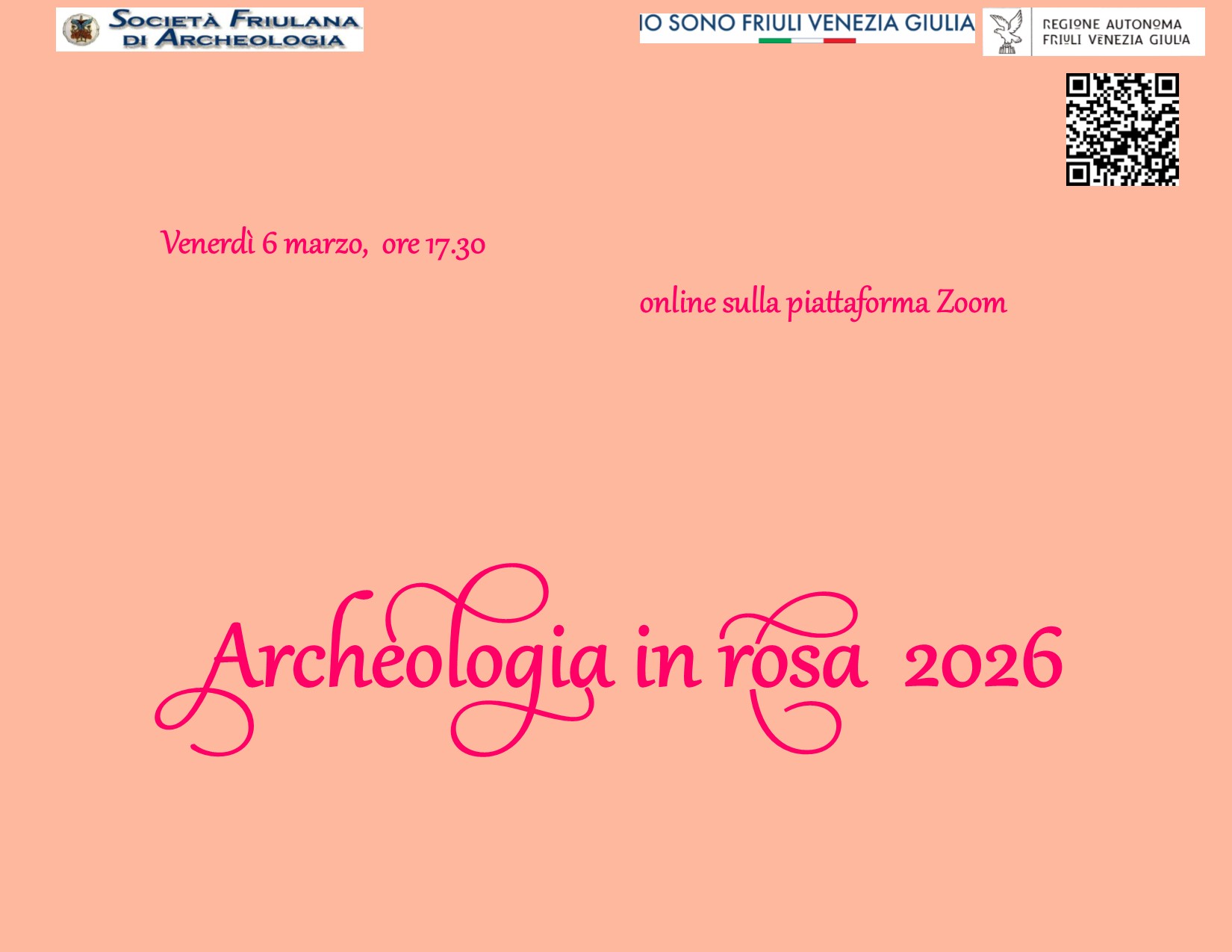 In occasione della Giornata internazionale della donna 2026, la Società Friulana di Archeologia odv organizza un incontro divulgativo per celebrare la figura femminile nel tempo. Venerdì 6 marzo 2026, alle 17.30, online su Zoom, “Archeologia in rosa” con Chiara Zanforlini, Laura Noviello e Stefano Vittori. Collegamento ad Agorà del Sapere / Zoom: ID: 99664973717 – PW: 776675 oppure Invito: https://zoom.us/j/99664973717…