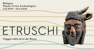 La locandina della mostra “Etruschi. Viaggio nella terra dei Rasna” al museo Archeologico di Bologna dal 7 dicembre 2019 al 24 maggio 2020