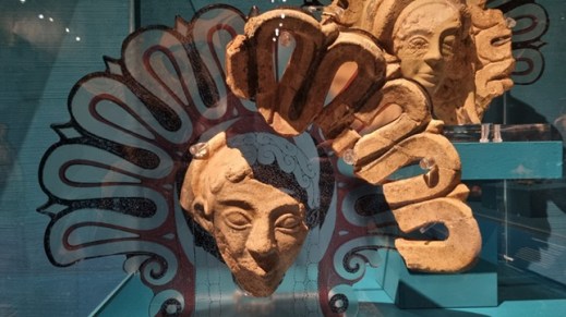 Antefissa di dea e di etiope in terracotta (510 a.C.) dal santiuario monumentale, Tempio B, di Pyrgi (foto graziano tavan)