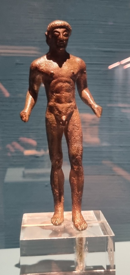 Statuetta di giovane nudo (kouros) in bronzo (470 a.C.) dal santuario per il culto delle acque di Kainua (Marzabotto) (foto graziano tavan)
