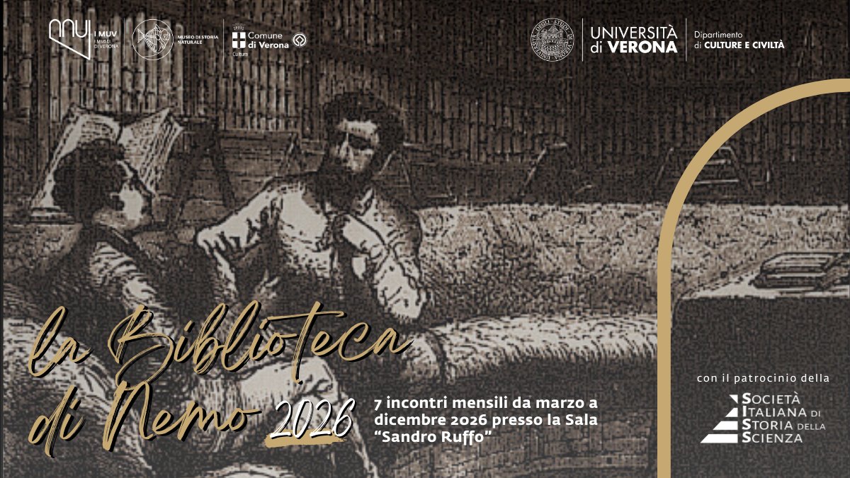 Giovedì 19 marzo 2026, alle 17, nella Sala Conferenze “Sandro Ruffo” del museo di Storia Naturale di Verona, ripartono gli incontri del ciclo “La Biblioteca di Nemo. Dialoghi di storia e di scienza al Museo di Storia Naturale di Verona”, a cura di Massimo Saracino e Andrea Tenca: sette appuntamenti, distribuiti da marzo a dicembre, grazie ai quali conoscere testi di recente pubblicazione scritti e curati da specialiste e specialisti i cui interessi di ricerca intrecciano i terreni di indagine del Museo di Storia Naturale, con un occhio di particolare riguardo per il taglio comunicativo, interdisciplinare e storicizzato del sapere scientifico. Gli incontri si svolgono il giovedì pomeriggio, tra le 17 e le 18.30. Ogni intervento, della durata di un’ora e mezza, è strutturato in maniera seminariale e discorsiva, con una breve presentazione dell’opera, un dialogo con uno o più discussants e uno spazio finale dedicato alle domande del pubblico. L’iniziativa è realizzata dai Musei Civici di Verona – Museo di Storia Naturale di Verona e Servizio Biblioteche Specialistiche e Archivi Storici dei Musei, in collaborazione con il Dipartimento di Culture e Civiltà dell’Università di Verona e con il patrocinio della Società Italiana di Storia della Scienza. Ingresso libero fino a esaurimento dei posti disponibili.