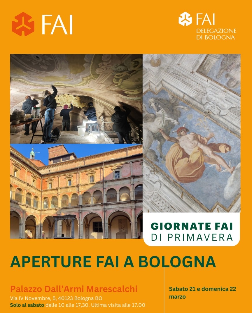 Il 21 marzo 2026, in occasione della 34ma edizione delle “Giornate FAI di Primavera”, le SABAP-MET-BO e SABAP-MO-RE-FE apriranno al pubblico la sede di Palazzo Marescalchi a Bologna partecipando al progetto “Apprendisti ciceroni” promosso dal FAI in collaborazione con i ragazzi del liceo Linguistico e Scientifico Scienze applicate dell’istituto Majorana di San Lazzaro di Savena (Bo). Grazie all’iniziativa, i cittadini potranno visitare alcune stanze del piano nobile che conservano affreschi di Guido Reni e della scuola dei Carracci e la raffinata sala ovale con la volta decorata dal celebre pittore neoclassico Felice Giani raffigurante episodi del primo libro dell’Eneide con al centro il banchetto di Enea e Didone. Le visite guidate si terranno durante tutto l’arco della giornata, dalle 10 alle 17.30, con ultima visita in partenza alle 17. Sono previste anche due visite in lingua: alle 11.40 in lingua georgiana e alle 15.20 in lingua russa. Ingresso libero fino ad esaurimento dei posti disponibili. Tutte le visite sono a contributo gratuito per sostenere la missione del FAI. Per informazioni: 051 233881 – bologna@delegazionefai.fondoambiente.it