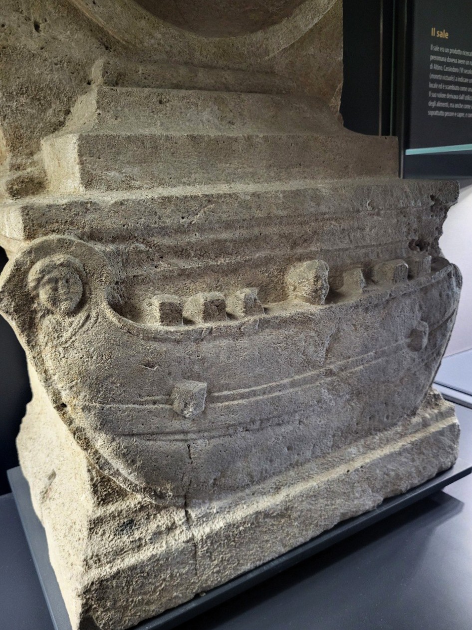 Dettaglio del bassorilievo con grande nave oneraria (I secolo d.C.) da Altino conservato al museo Archeologico nazionale di Altino (foto parco archeologico altino)