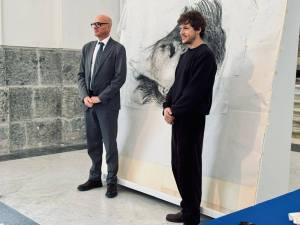 Francesco Sirano, direttore del museo Archeologico nazionale di Napoli, con l’artista Francisco Bosoletti nell’atri del Mann (foto mann)