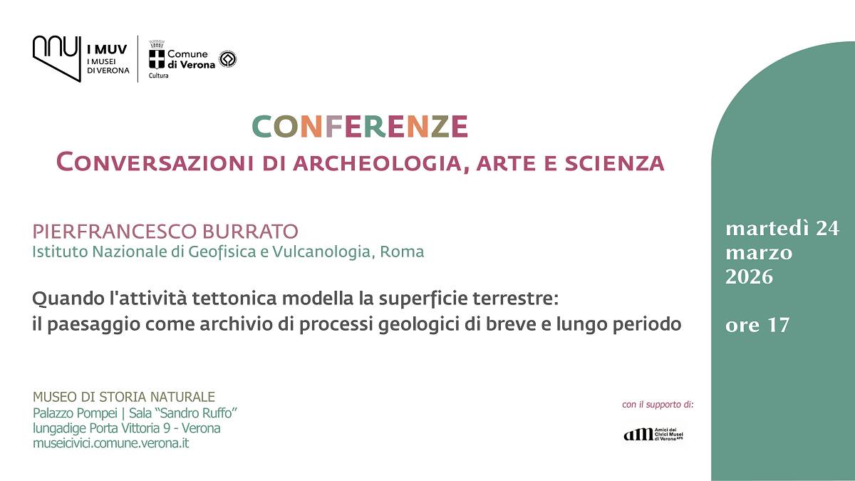 Martedì 24 marzo 2026, alle 17, nella sala “Sandro Ruffo” del museo di Storia naturale di Verona, nuovo appuntamento con le conferenze dei Musei Civici 2025-2026, l’incontro “Quando l’attività tettonica modella la superficie terrestre: il paesaggio come archivio di processi geologici di breve e lungo periodo” con Pierfrancesco Burrato dell’istituto nazionale di Geofisica e Vulcanologia di Roma. Ingresso libero fino a esaurimento dei posti disponibili. L’attività tettonica è un fattore fondamentale nel modellare la superficie terrestre, creando montagne, valli e altri paesaggi attraverso l’interazione tra forze interne ed esterne. Il paesaggio conserva tracce di deformazioni passate che possono aiutarci a comprendere i processi in corso, come la presenza di faglie attive e le potenziali sorgenti di pericoli naturali. Tecniche avanzate come l’interferometria radar satellitare (InSAR) permettono di monitorare i movimenti della crosta terrestre con grande precisione. Inoltre, elementi naturali come rocce sedimentarie deformate e terrazzi marini registrano la storia geologica del passato. Analizzando questi dati, è possibile ricostruire l’evoluzione della crosta terrestre e migliorare le valutazioni di pericolosità sismica e vulcanica. Questi studi, che integrano geologia e geomorfologia, sono essenziali per ridurre i rischi naturali e aumentare la sicurezza delle aree abitate.