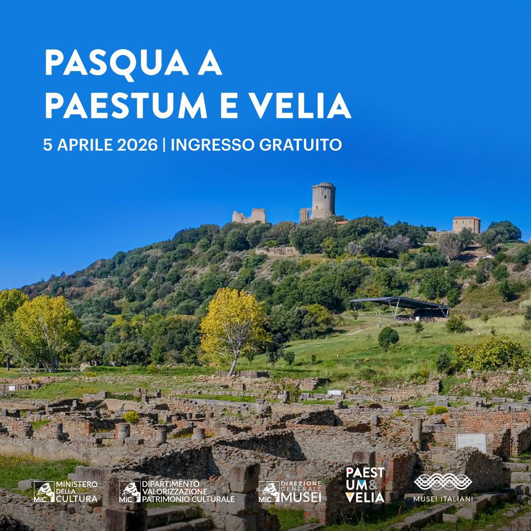 In occasione delle festività pasquali, i parchi archeologici di Paestum e Velia (Sa) sono regolarmente aperti, dalle 8.30 alle 19.30 con ultimo ingresso alle 18.30, offrendo a visitatori e famiglie l’opportunità di vivere queste giornate all’insegna della cultura, della bellezza e della storia. Il 5 aprile 2026, Domenica di Pasqua, coincide con la prima domenica del mese, con ingresso gratuito per tutti, grazie all’iniziativa promossa dal ministero della Cultura. Anche a Pasquetta, i Parchi resteranno aperti per accogliere il pubblico che desidera trascorrere una giornata diversa, tra arte, natura e relax. Un’occasione speciale per riscoprire due tra i siti archeologici più affascinanti del Mediterraneo, tra templi maestosi, paesaggi unici e percorsi immersi nella storia millenaria, con la possibilità di spostarsi tra Paestum e Velia grazie al servizio di navetta gratuita, attivo per entrambe le giornate di festa e pensato per favorire una mobilità sostenibile e una fruizione integrata dei due siti.