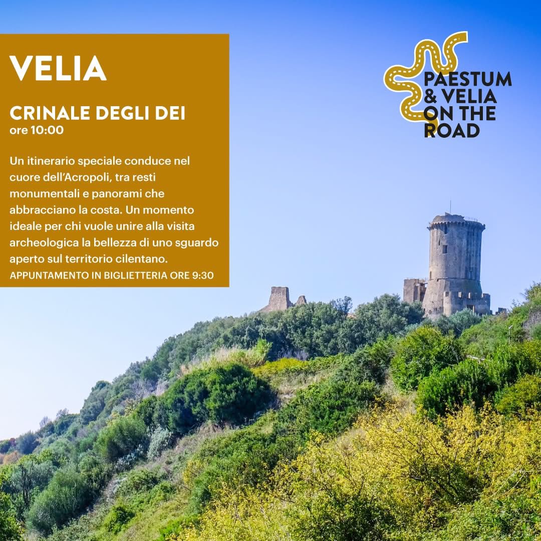 CRINALE DEGLI DEI. A Velia, alle 10, passeggiata lungo il Crinale degli dei, il percorso archeo-paesaggistico che si snoda lungo le terrazze sacre di Velia, tra l’Acropoli e l’entroterra. Durante la passeggiata si potranno ammirare panorami e scorci unici di Velia, del suo mare e del suo territorio. Lungo il crinale, oltrepassando Porta Rosa, ci si immerge in un territorio vivace e ricco. Appuntamento in biglietteria 9.30.