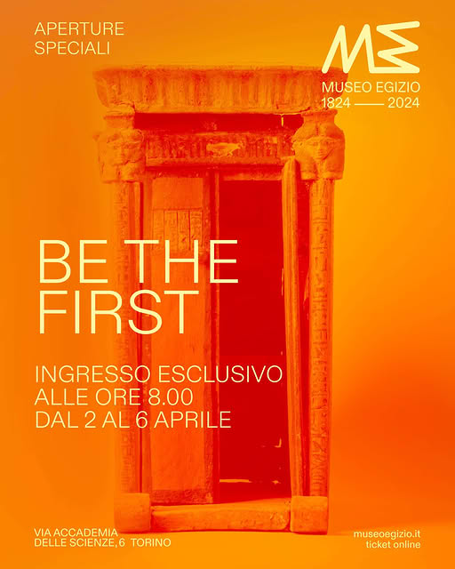 Dal 2 al 6 aprile, e poi dal 1° al 3 maggio, e ancora dal 30 maggio al 2 giugno 2026, si può scoprire il museo Egizio di Torino in una chiave unica ed esclusiva grazie all’ingresso prima dell’orario di apertura. Con il biglietto speciale “Be the First” si può accedere al Museo già dalle 8 del mattino in modalità a porte chiuse e avere così l’opportunità unica di ammirare la collezione immersa nelle prime luci del giorno. Inoltre, acquistando questo biglietto, si può godere una colazione nella nostra caffetteria al prezzo speciale di 1 euro per un caffè e un croissant. Attenzione: i posti sono limitati per garantire l’esclusività dell’esperienza. L’ingresso “Be the First” non prevede tariffe agevolate o gratuità. Le tessere “Abbonamento Musei” e “Torino+Piemonte Card” non sono valide in questi orari. Non è consentito effettuare visite guidate. Per accedere al Museo prima del consueto orario di apertura è obbligatorio acquistare il biglietto d’ingresso online.